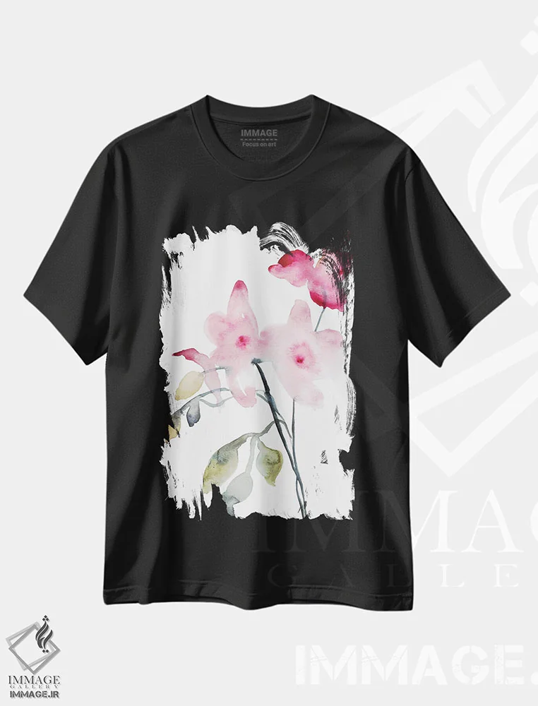 تیشرت مشکی طرح دار ارکیده شمارهٔ ۴، هنر فاخر معاصر اثر الیزابت بکر | فروشگاه ایماژ تیشرت طرح دار ارکیده شمارهٔ اثر الیزابت بکر