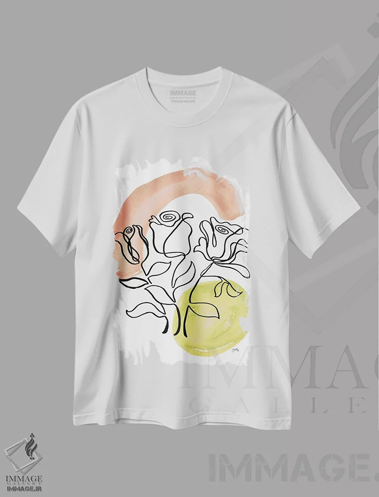 تیشرت سفید طرح دار طرح گل عاشقانه، دکور معاصر اثر الیزابت مدلی | فروشگاه ایماژ تیشرت طرح دار طرح گل عاشقانه اثر الیزابت مدلی