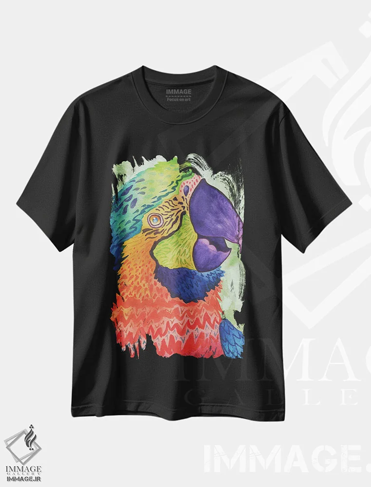 تیشرت مشکی طرح دار طوطی بی نقص، مدیوم اثر الیزابت مدلی | فروشگاه ایماژ تیشرت طرح دار طوطی بی نقص اثر الیزابت مدلی