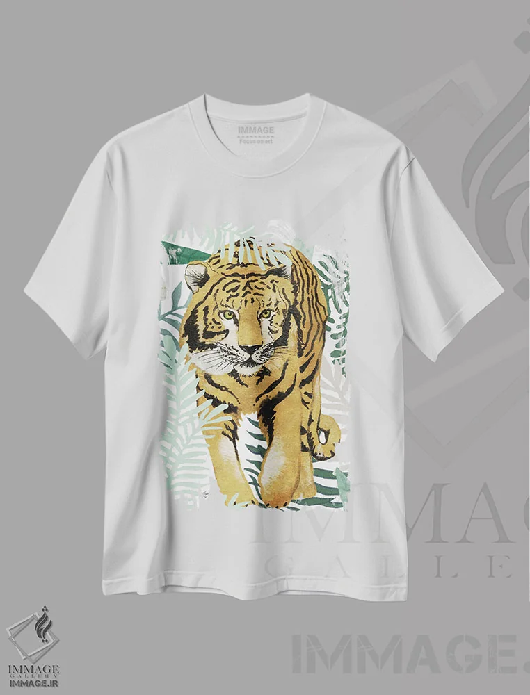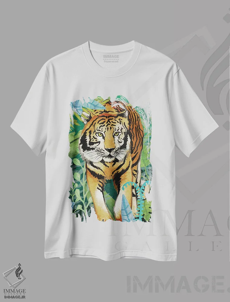 تیشرت سفید طرح دار ببر جنگل I، تزئینی اثر الیزابت مدلی | فروشگاه ایماژ تیشرت طرح دار ببر جنگل I اثر الیزابت مدلی