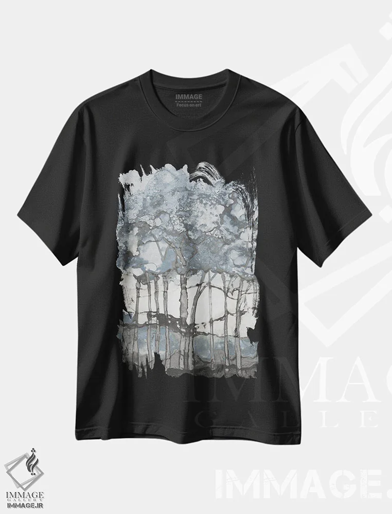 تیشرت مشکی طرح دار جنگل آبرنگی ۱، آبستره اثر الیزابت مدلی | فروشگاه ایماژ تیشرت طرح دار جنگل آبرنگی اثر الیزابت مدلی