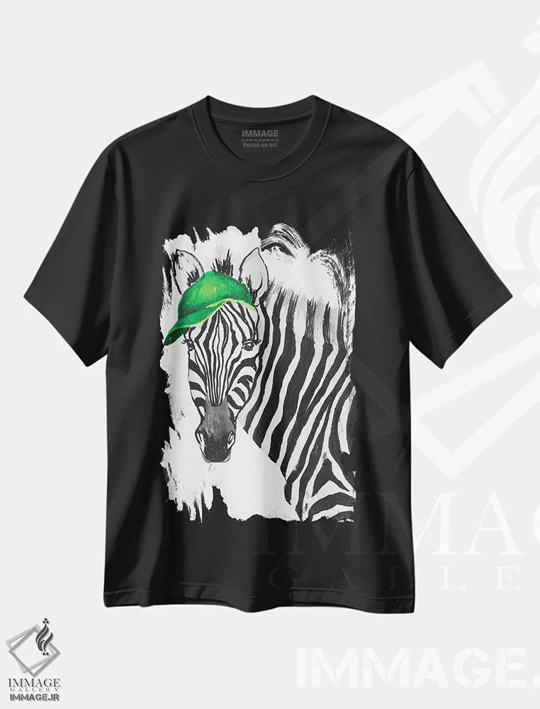 تیشرت مشکی طرح دار گورخر ورزشی، تزئینی اثر الیزابت مدلی | فروشگاه ایماژ تیشرت طرح دار گورخر ورزشی اثر الیزابت مدلی