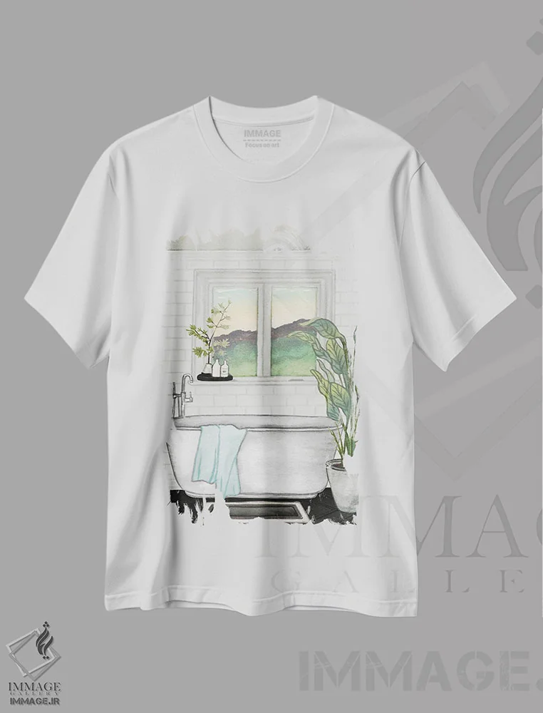 تیشرت سفید طرح دار حمام مدرن سیاه و سفید I، تزئینی اثر الیزابت مدلی | فروشگاه ایماژ تیشرت طرح دار حمام مدرن سیاه و سفید I اثر الیزابت مدلی