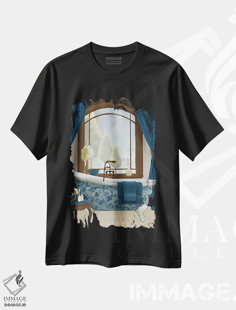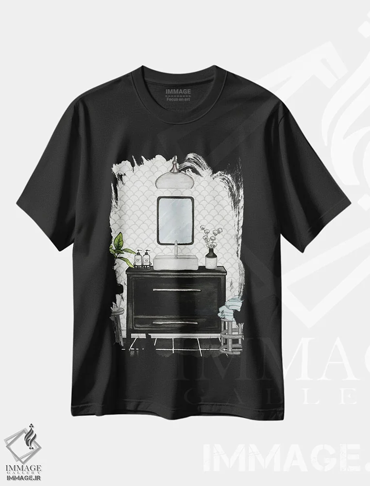 تیشرت مشکی طرح دار حمام مدرن سیاه و سفید II، تزئینی اثر الیزابت مدلی | فروشگاه ایماژ تیشرت طرح دار حمام مدرن سیاه و سفید II اثر الیزابت مدلی