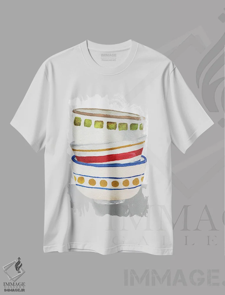 تیشرت سفید طرح دار کاسه های روی هم I، تزئینی اثر الیزابت مدلی | فروشگاه ایماژ تیشرت طرح دار کاسه های روی هم I اثر الیزابت مدلی