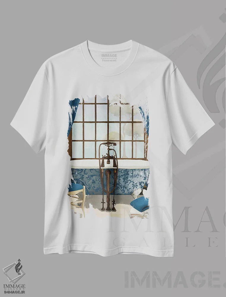 تیشرت سفید طرح دار تزئینات آرامش ۴، مدیوم اثر الیزابت مدلی | فروشگاه ایماژ تیشرت طرح دار تزئینات آرامش اثر الیزابت مدلی