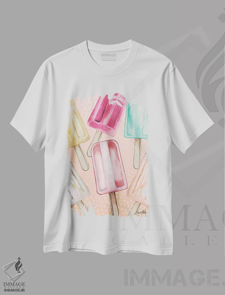 تیشرت سفید طرح دار بستنی یخی خنک، مدیوم اثر الیزابت مدلی | فروشگاه ایماژ تیشرت طرح دار بستنی یخی خنک اثر الیزابت مدلی