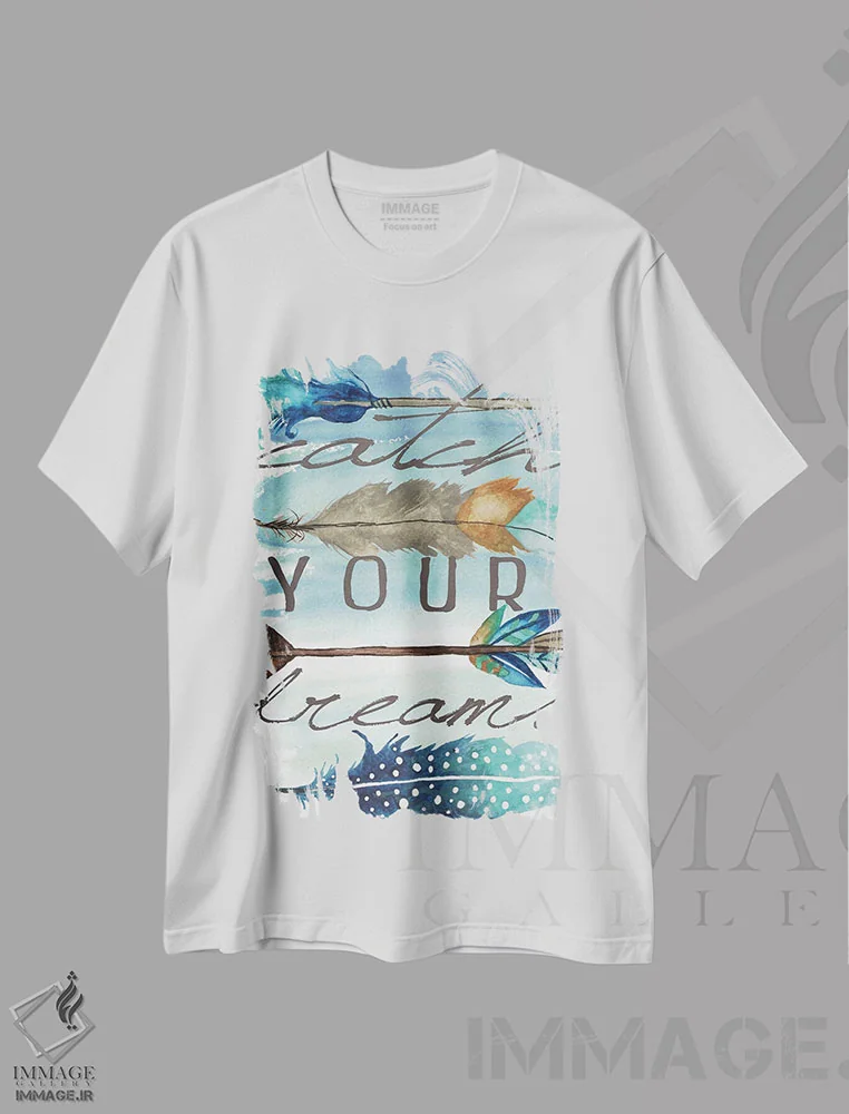 تیشرت سفید طرح دار رؤیاهایت را شکار کن، تزئینی اثر الیزابت مدلی | فروشگاه ایماژ تیشرت طرح دار رؤیاهایت را شکار کن اثر الیزابت مدلی