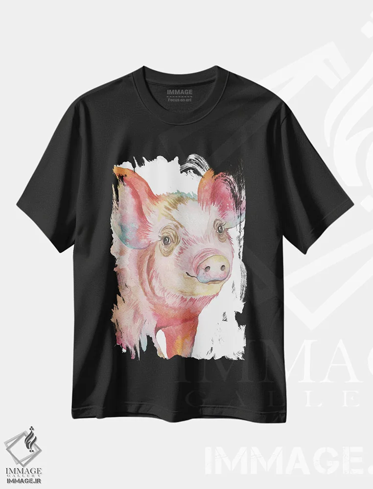 تیشرت مشکی طرح دار خوک شمارهٔ یک، تزئینی اثر الیزابت مدلی | فروشگاه ایماژ تیشرت طرح دار خوک شمارهٔ یک اثر الیزابت مدلی