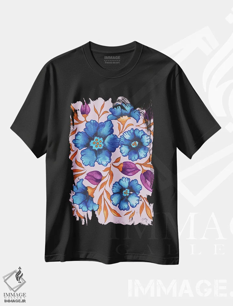 تیشرت مشکی طرح دار طرح گل مدرن ۱، تزئینی اثر الیزابت مدلی | فروشگاه ایماژ تیشرت طرح دار طرح گل مدرن اثر الیزابت مدلی