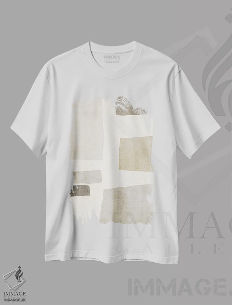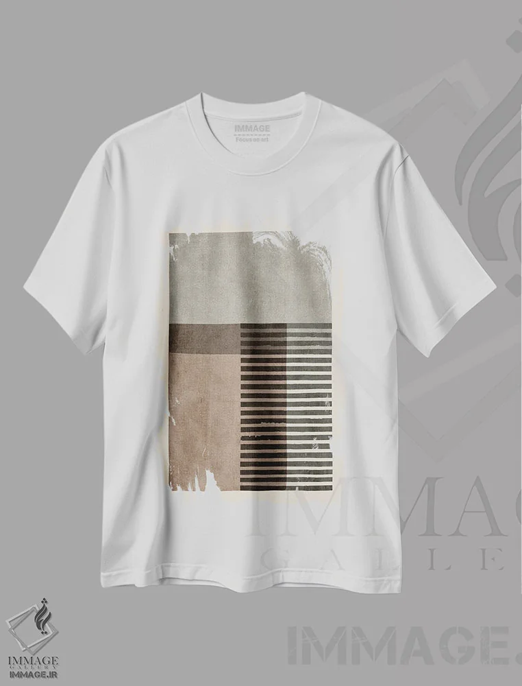 تیشرت سفید طرح دار انتزاعی مینیمال با رنگ های خنثی II اثر ام سی دیزاین لب | فروشگاه ایماژ تیشرت طرح دار انتزاعی مینیمال با رنگ های خنثی II اثر ام سی دیزاین لب