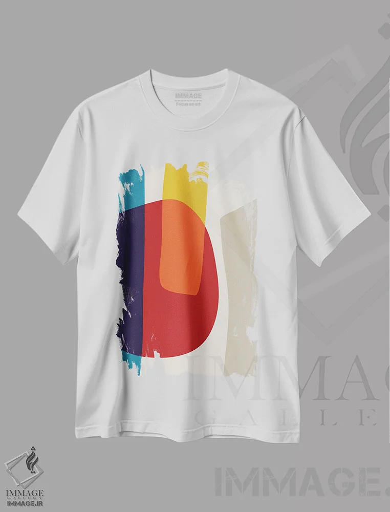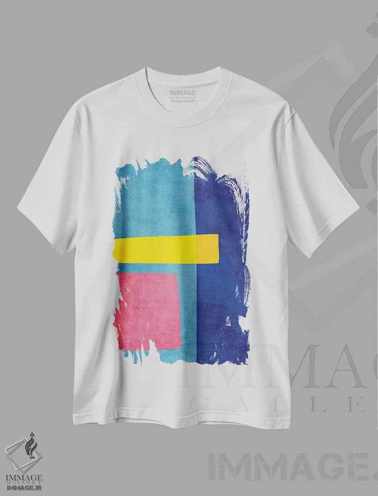 تیشرت سفید طرح دار انتزاعی قرمز زرد آبی بژ ۴ اثر ام سی دیزاین لب | فروشگاه ایماژ تیشرت طرح دار انتزاعی قرمز زرد آبی بژ اثر ام سی دیزاین لب