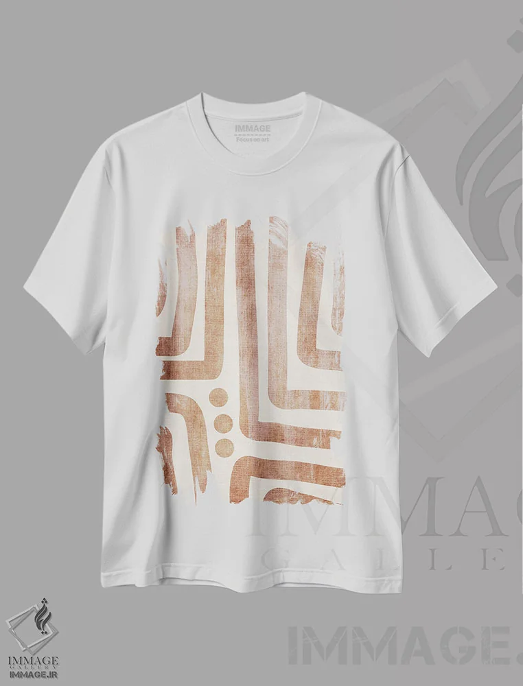 تیشرت سفید طرح دار خطوط انتزاعی قهوه ای سفالی II اثر ام سی دیزاین لب | فروشگاه ایماژ تیشرت طرح دار خطوط انتزاعی قهوه ای سفالی II اثر ام سی دیزاین لب