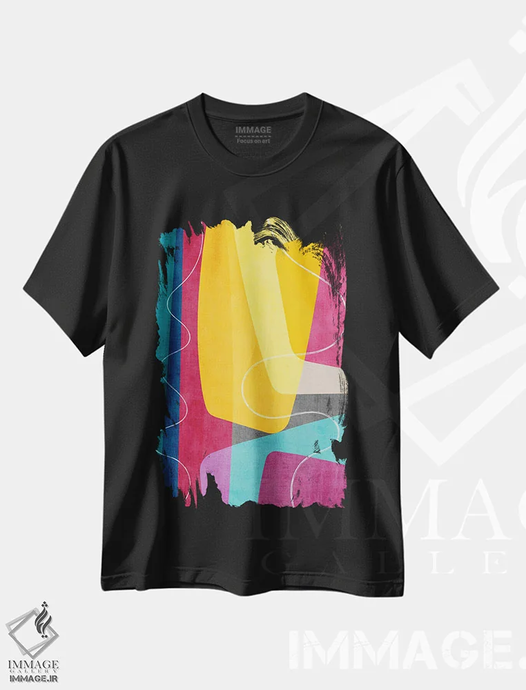 تیشرت مشکی طرح دار اثر انتزاعی مدرن چندرنگ اثر ام سی دیزاین لب | فروشگاه ایماژ تیشرت طرح دار اثر انتزاعی مدرن چندرنگ اثر ام سی دیزاین لب