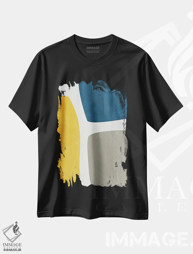 تیشرت مشکی طرح دار مینیمالیسم مدرن سرمه ای و زرد اثر ام سی دیزاین لب | فروشگاه ایماژ تیشرت طرح دار مینیمالیسم مدرن سرمه ای و زرد اثر ام سی دیزاین لب