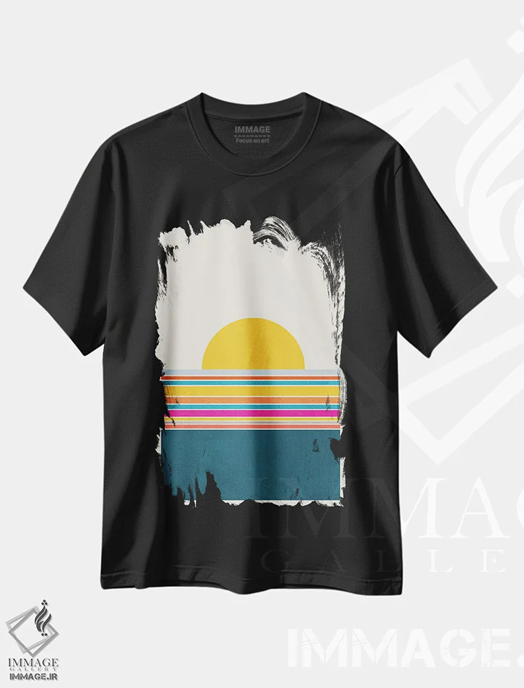 تیشرت مشکی طرح دار غروب دریایی خورشید نارنجی، آبستره اثر ام سی دیزاین لب | فروشگاه ایماژ تیشرت طرح دار غروب دریایی خورشید نارنجی اثر ام سی دیزاین لب
