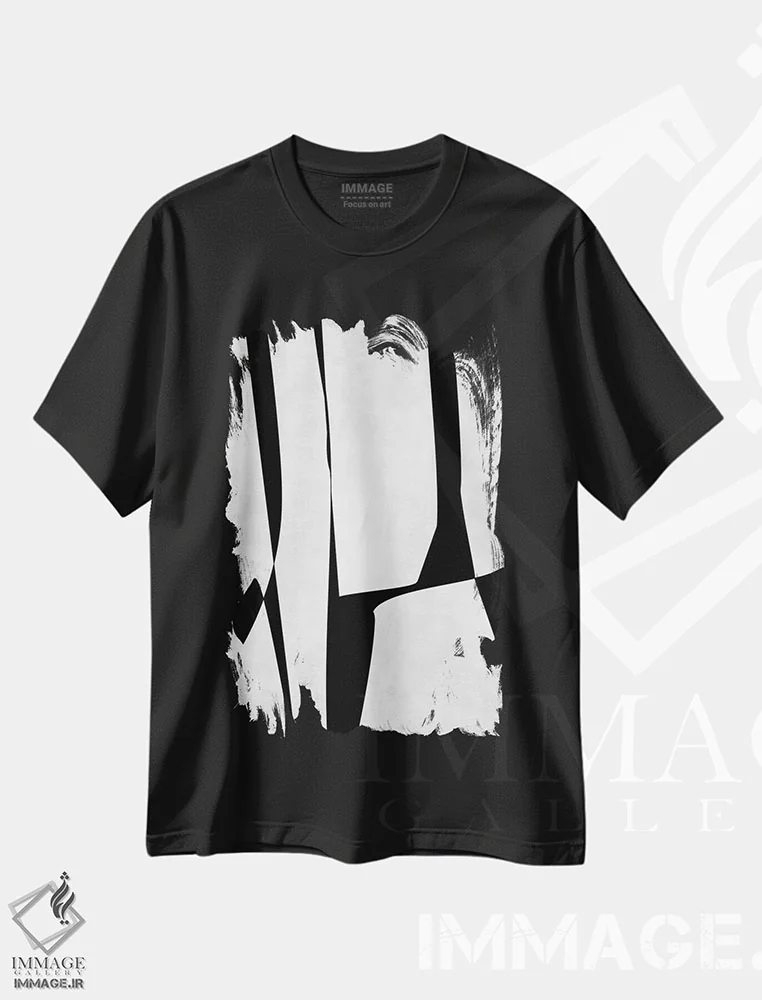 تیشرت مشکی طرح دار ترکیب مینیمال سیاه و سفید ۱ اثر ام سی دیزاین لب | فروشگاه ایماژ تیشرت طرح دار ترکیب مینیمال سیاه و سفید اثر ام سی دیزاین لب