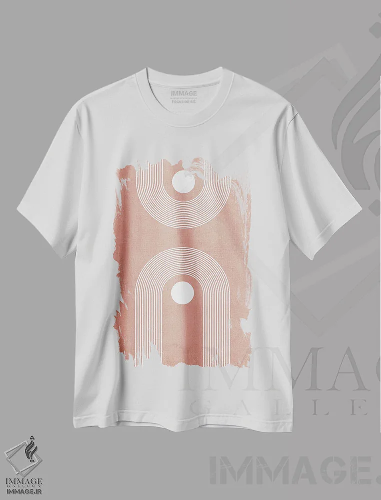 تیشرت سفید طرح دار قوس های سرخ گلی اثر ام سی دیزاین لب | فروشگاه ایماژ تیشرت طرح دار قوس های سرخ گلی اثر ام سی دیزاین لب
