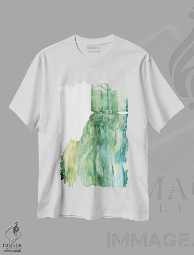 تیشرت سفید طرح دار تعبیر اسکله ۱، آبستره اثر اما کارولین | فروشگاه ایماژ تیشرت طرح دار تعبیر اسکله اثر اما کارولین