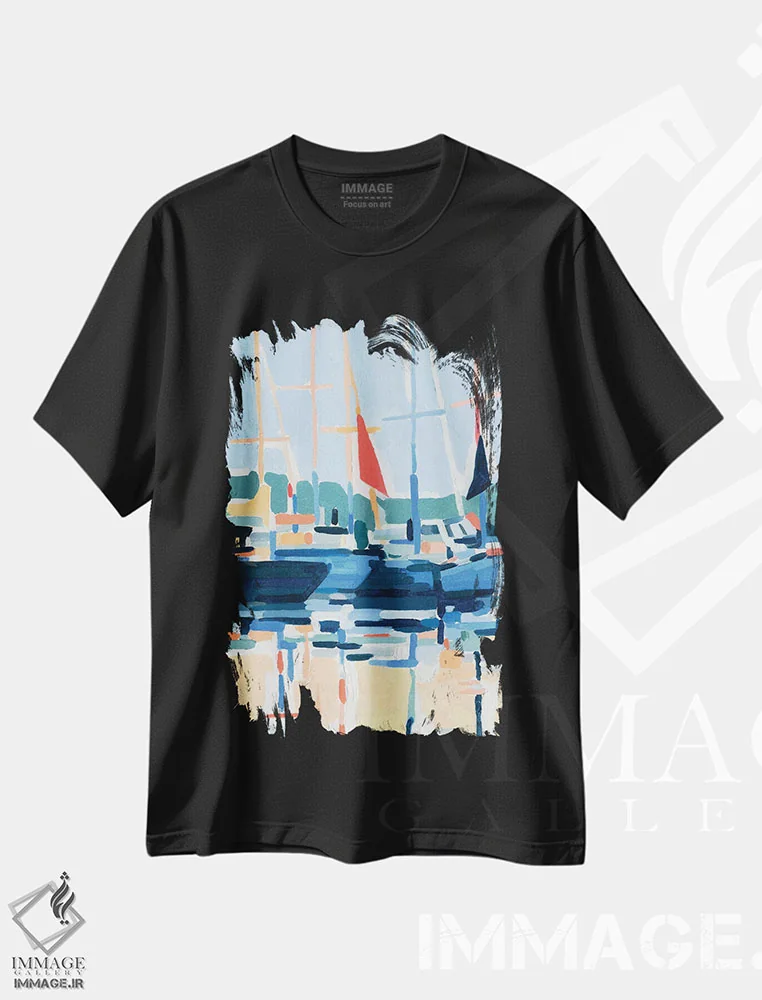 تیشرت مشکی طرح دار تعبیر اسکله ۲، آبستره اثر اما کارولین | فروشگاه ایماژ تیشرت طرح دار تعبیر اسکله اثر اما کارولین