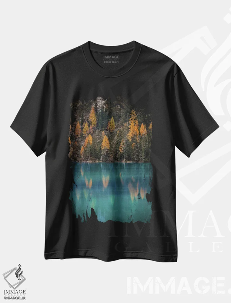 تیشرت مشکی طرح دار بازتاب های پاییز، مدیوم اثر انزو رومانو | فروشگاه ایماژ