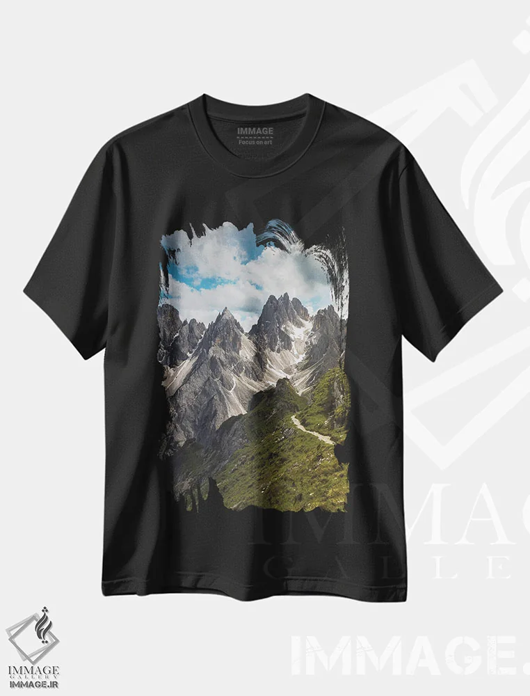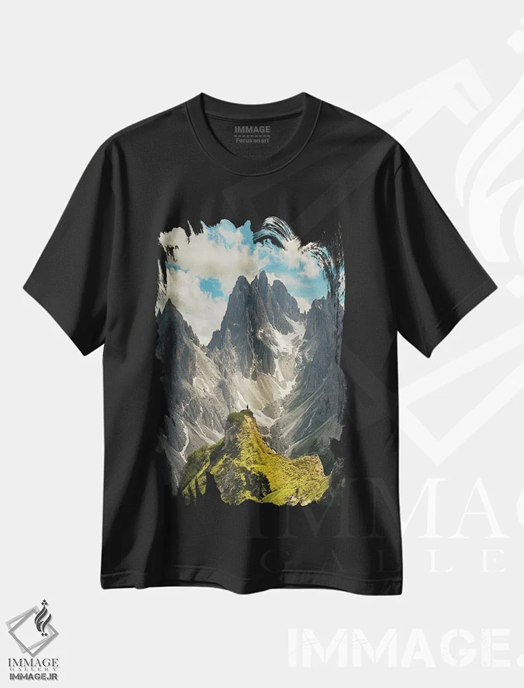 تیشرت مشکی طرح دار دریاچه آرونزو، مدیوم اثر انزو رومانو | فروشگاه ایماژ