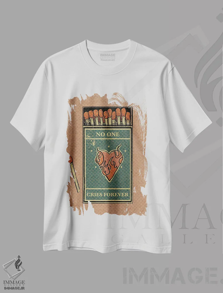 تیشرت سفید طرح دار هیچ کس همیشه گریه نمی کند، دکوراسیون جایگزین اثر ایلو ناتیکا | فروشگاه ایماژ تیشرت طرح دار هیچ کس همیشه گریه نمی کند اثر ایلو ناتیکا