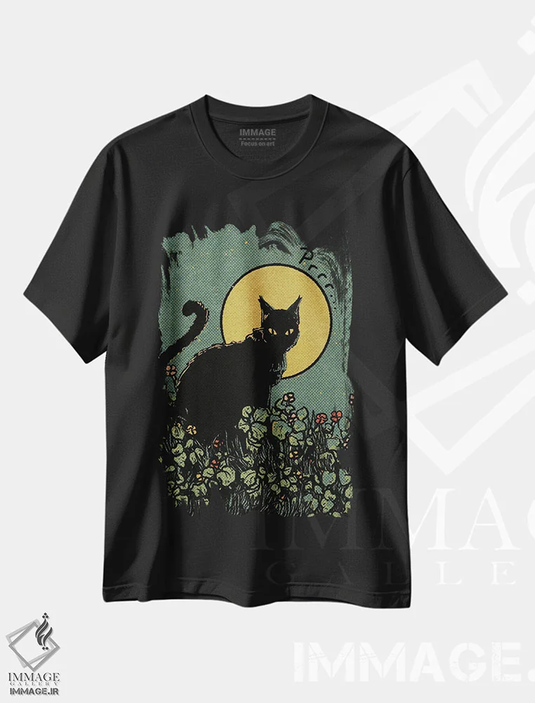 تیشرت مشکی طرح دار گربه، دکوراسیون جایگزین اثر ایلو ناتیکا | فروشگاه ایماژ تیشرت طرح دار گربه اثر ایلو ناتیکا