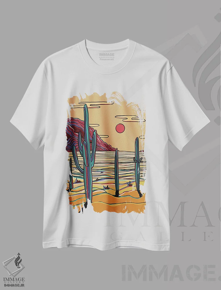 تیشرت سفید طرح دار کاکتوس های رنگارنگ، تزئینی اثر ایلو ناتیکا | فروشگاه ایماژ تیشرت طرح دار کاکتوس های رنگارنگ اثر ایلو ناتیکا