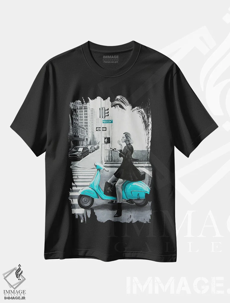 تیشرت مشکی طرح دار خیابان مدیسون، هنر فاخر معاصر اثر اینا مدودوا | فروشگاه ایماژ تیشرت طرح دار خیابان مدیسون اثر اینا مدودوا