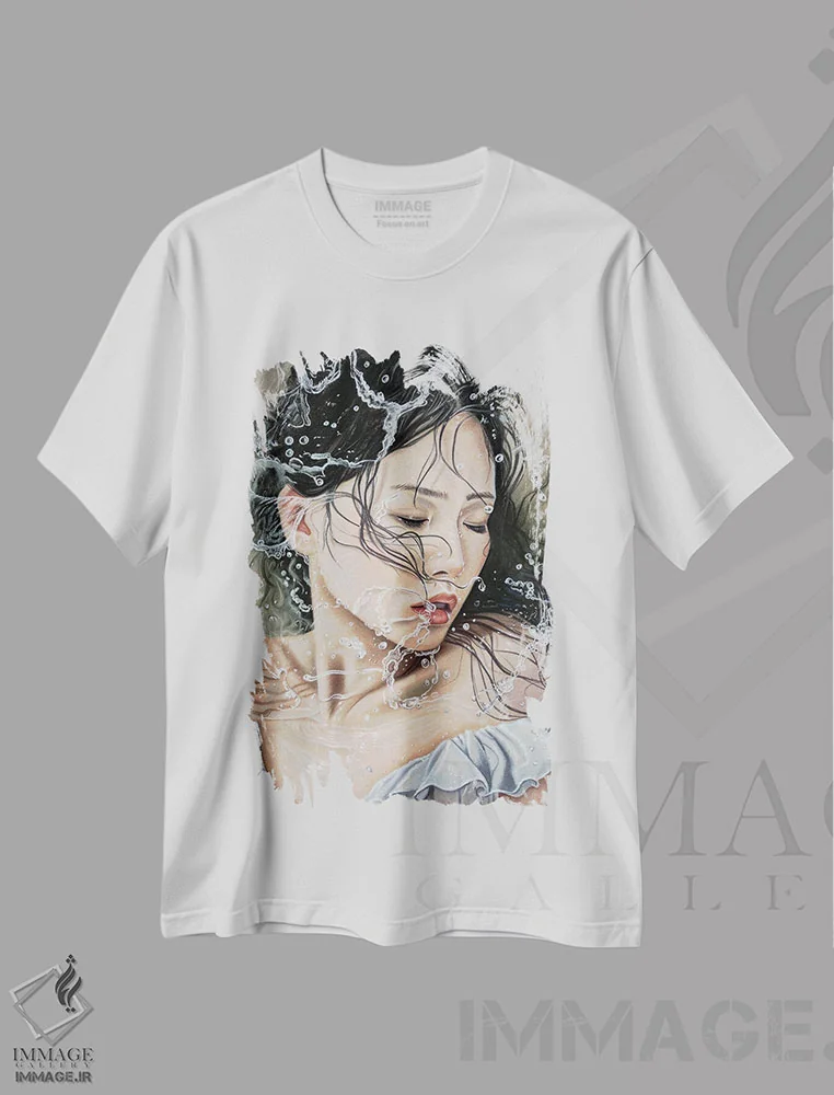 تیشرت مشکی طرح دار دختری در آب، مدیوم اثر اینا مدودوا | فروشگاه ایماژ تیشرت طرح دار دختری در آب اثر اینا مدودوا
