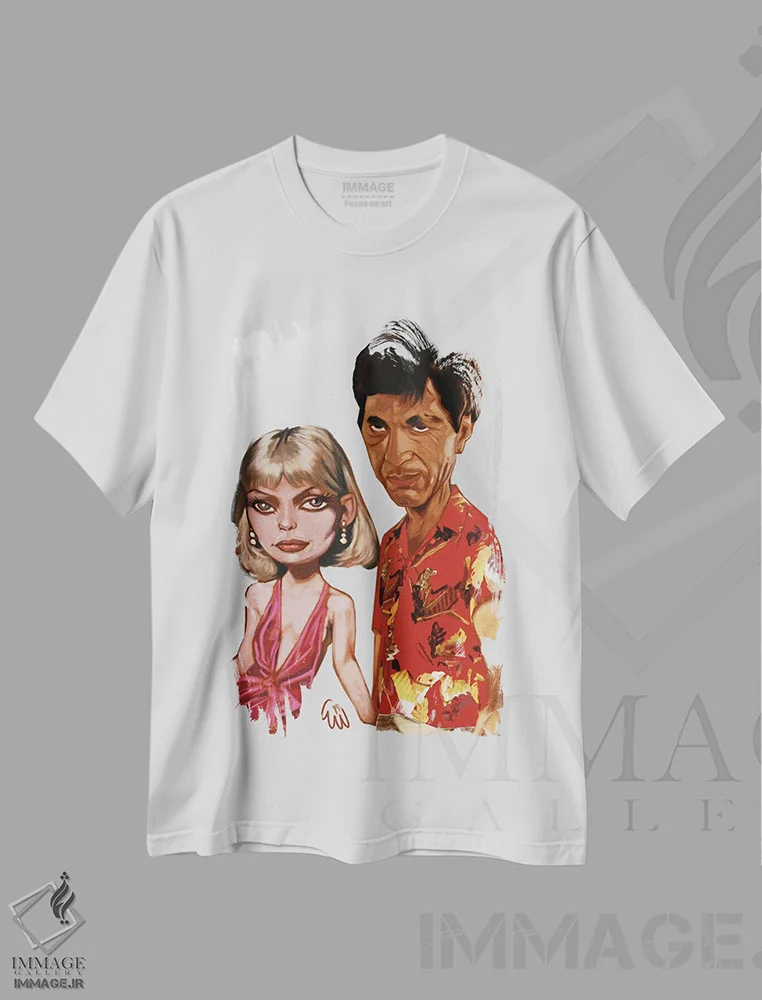 تیشرت سفید طرح دار اسکارفیس، تزئینی اثر ایوان ویلیامز | فروشگاه ایماژ تیشرت طرح دار اسکارفیس اثر ایوان ویلیامز