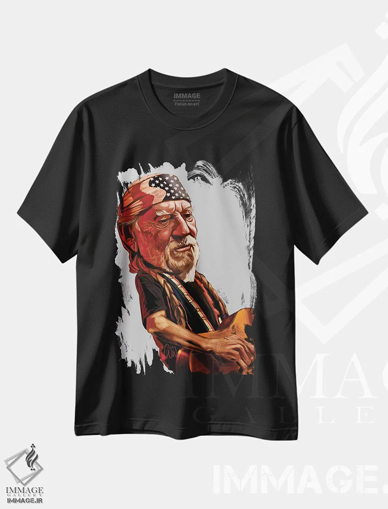 تیشرت مشکی طرح دار ویلی نلسون، تزئینی اثر ایوان ویلیامز | فروشگاه ایماژ تیشرت طرح دار ویلی نلسون اثر ایوان ویلیامز
