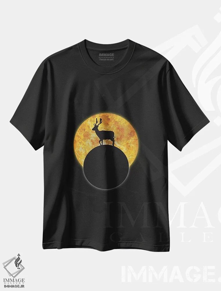 تیشرت مشکی طرح دار گوزن روی ماه اثر باروف | فروشگاه ایماژ تیشرت طرح دار گوزن روی ماه اثر باروف