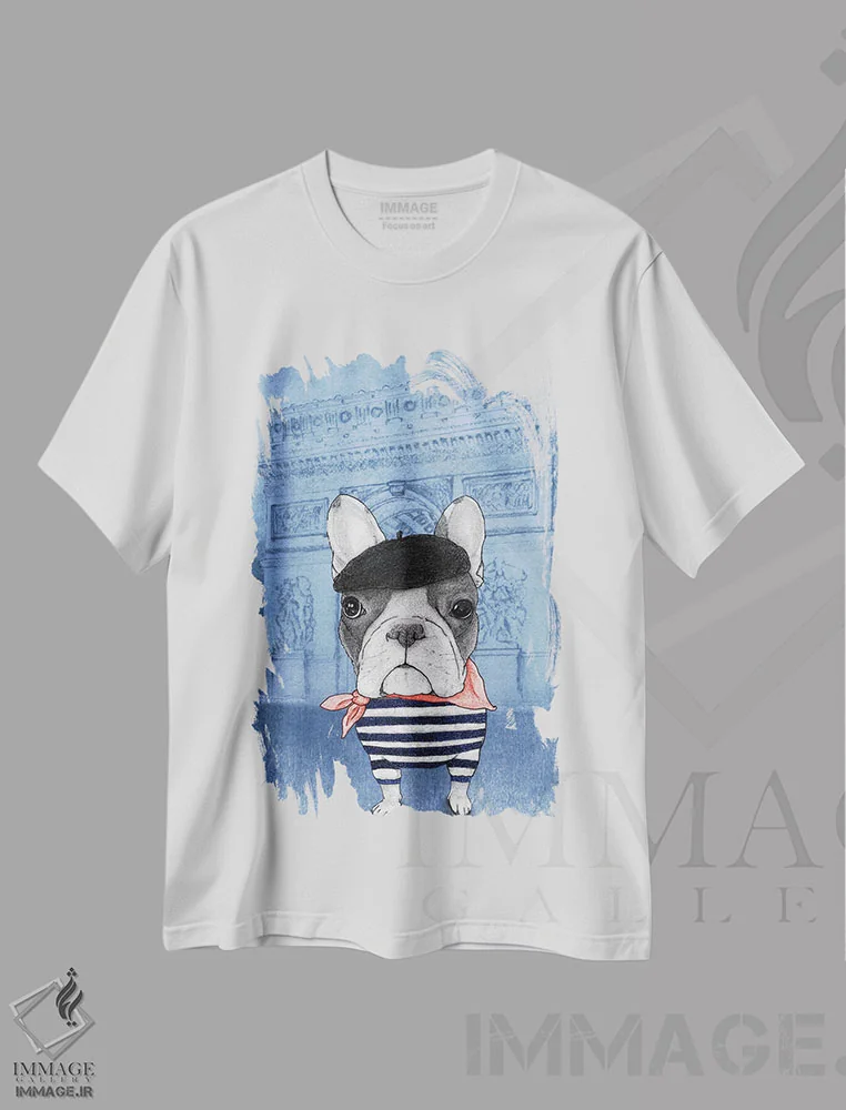 تیشرت سفید طرح دار بولداگ فرانسوی با طاق پیروزی اثر باروف | فروشگاه ایماژ تیشرت طرح دار بولداگ فرانسوی با طاق پیروزی اثر باروف