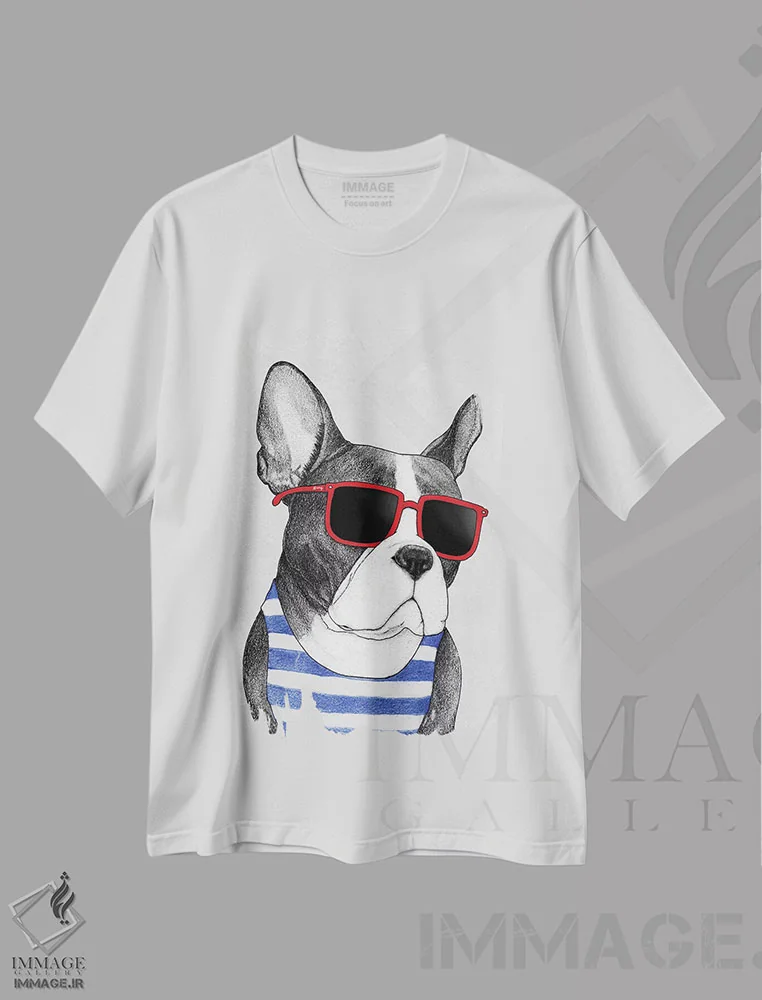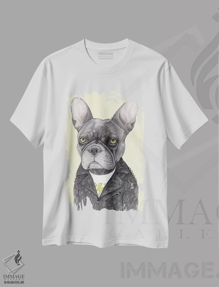 تیشرت سفید طرح دار بولداگ فرانسوی هارد راک، دست نقاشی و طراحی دستی اثر باروف | فروشگاه ایماژ تیشرت طرح دار بولداگ فرانسوی هارد راک اثر باروف