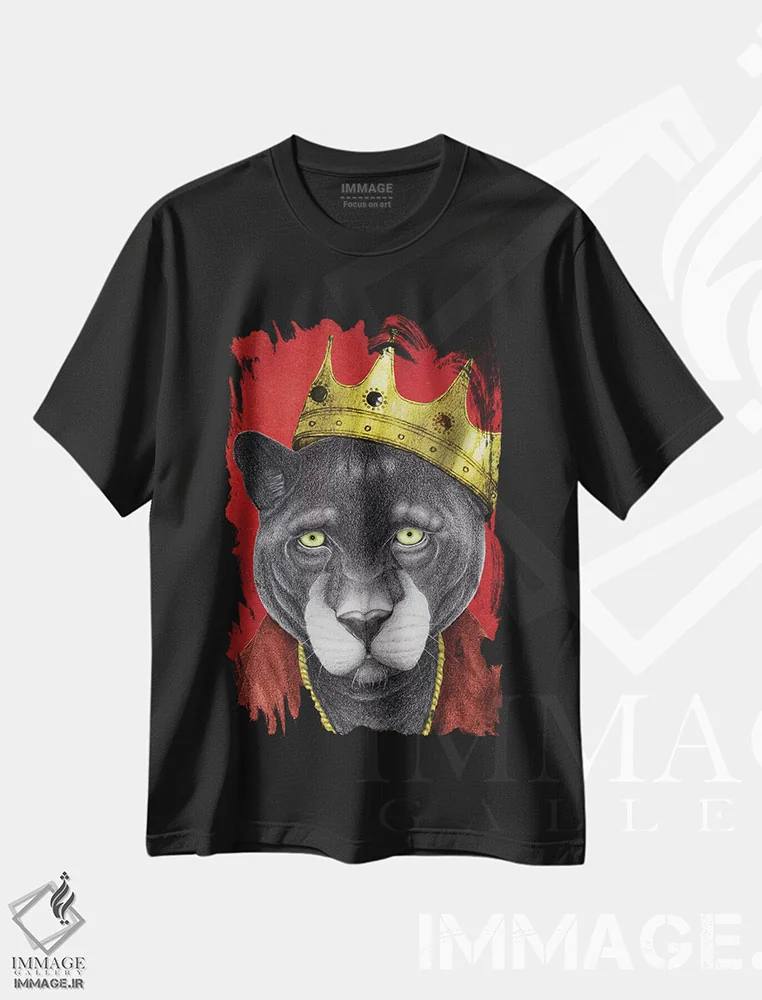 تیشرت مشکی طرح دار شاه پلنگ، دست نقاشی و طراحی دستی اثر باروف | فروشگاه ایماژ تیشرت طرح دار شاه پلنگ اثر باروف