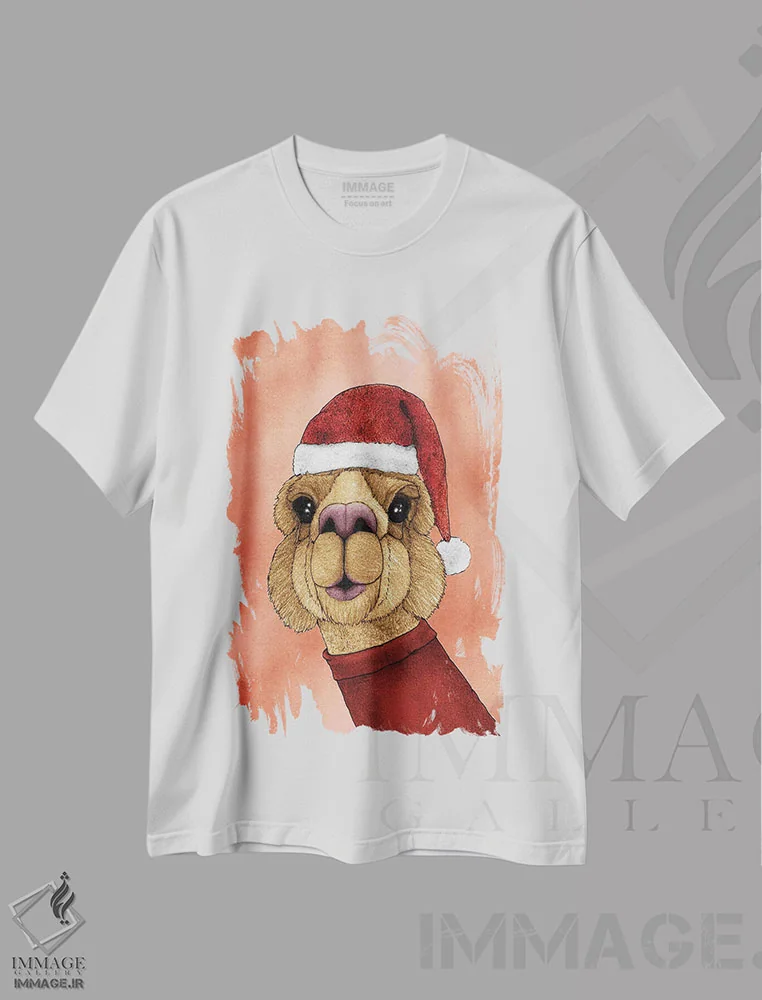 تیشرت سفید طرح دار آلپاکای کریسمس، حیوانات کریسمسی اثر باروف | فروشگاه ایماژ تیشرت طرح دار آلپاکای کریسمس اثر باروف