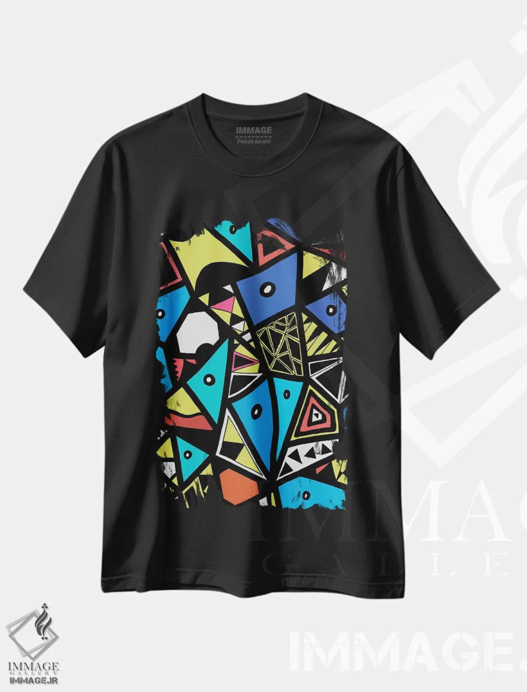 تیشرت مشکی طرح دار تریپ هاپ در شهر، آبستره اثر باروف | فروشگاه ایماژ تیشرت طرح دار تریپ هاپ در شهر اثر باروف