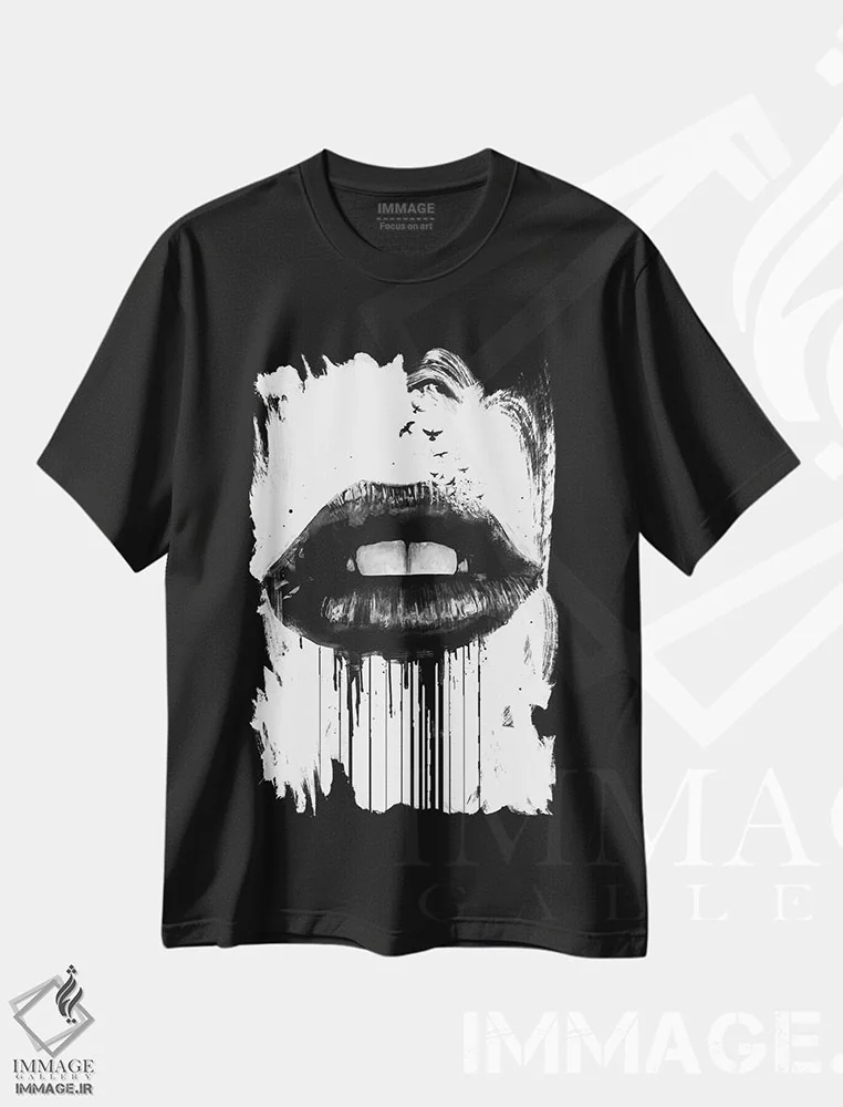 تیشرت مشکی طرح دار مرا ببوس، دکور معاصر اثر بالازس شولتی | فروشگاه ایماژ