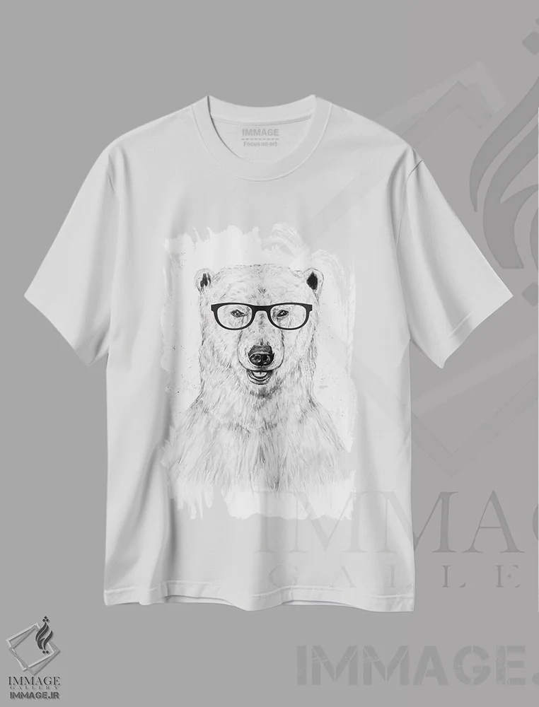 تیشرت سفید طرح دار خرس خرخوان، هنر تزئینی سیاه و سفید اثر بالازس شولتی | فروشگاه ایماژ