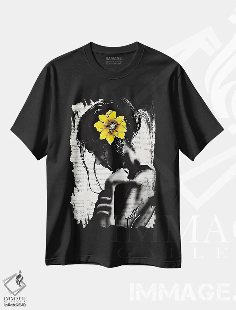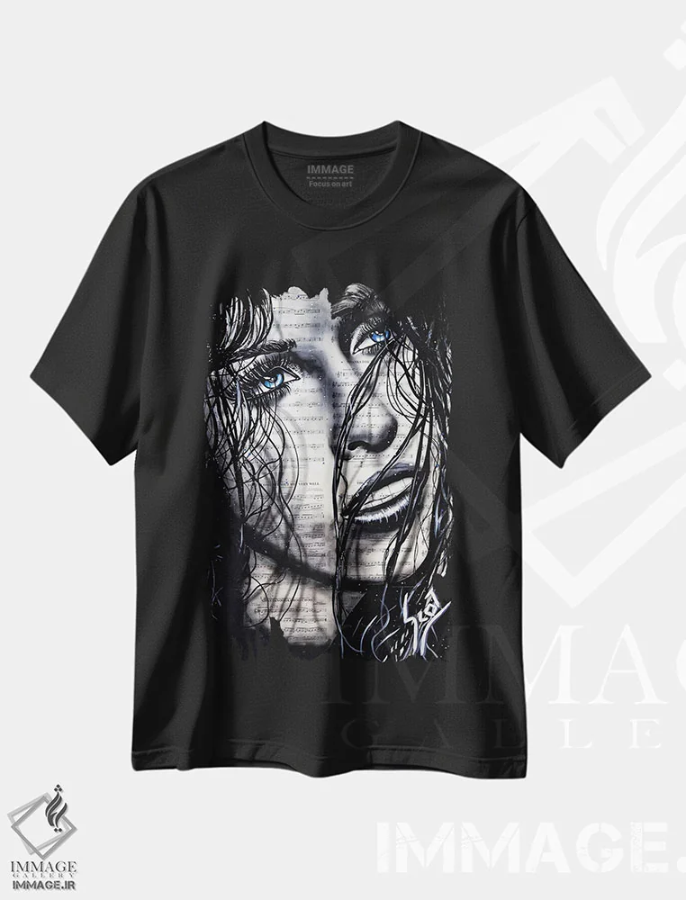 تیشرت مشکی طرح دار زیرِ آن ۱، هنر فاخر معاصر اثر براندون اسکات | فروشگاه ایماژ