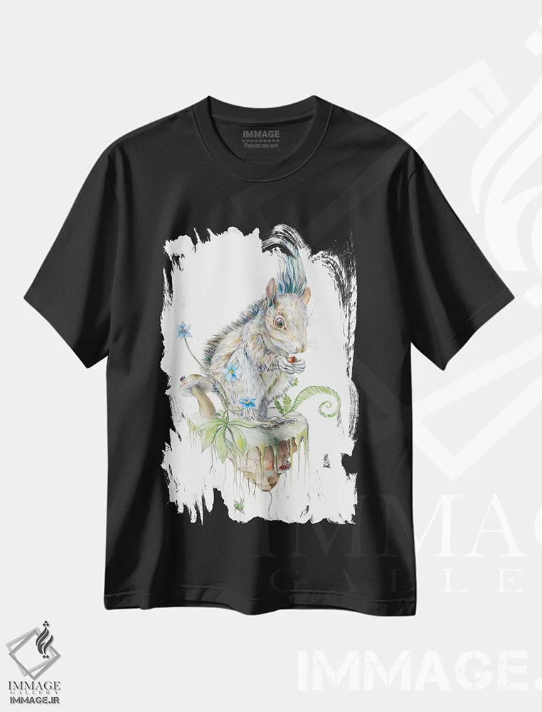تیشرت مشکی طرح دار جزیره سنجاب، هنر فاخر اثر براندون کیهنر | فروشگاه ایماژ تیشرت طرح دار جزیره سنجاب اثر براندون کیهنر