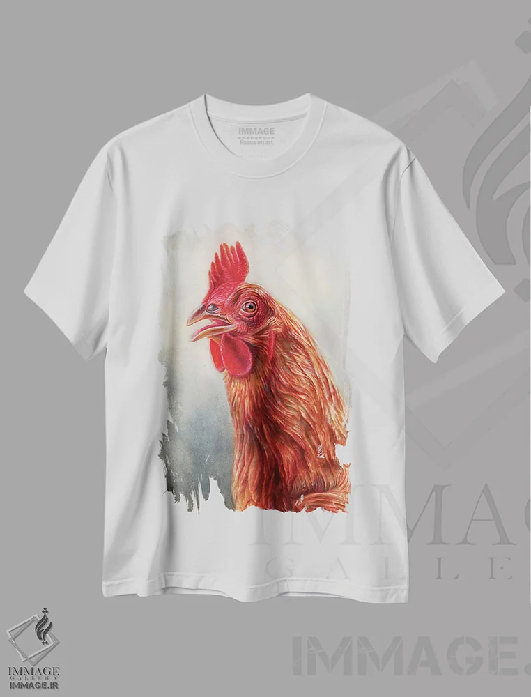 تیشرت سفید طرح دار مرغ قرمز اثر براندون کیهنر | فروشگاه ایماژ تیشرت طرح دار مرغ قرمز اثر براندون کیهنر