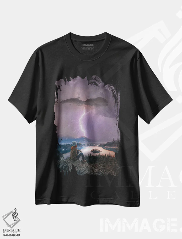 تیشرت مشکی طرح دار طوفان بارانی، مدیوم اثر برنت شاونور | فروشگاه ایماژ
