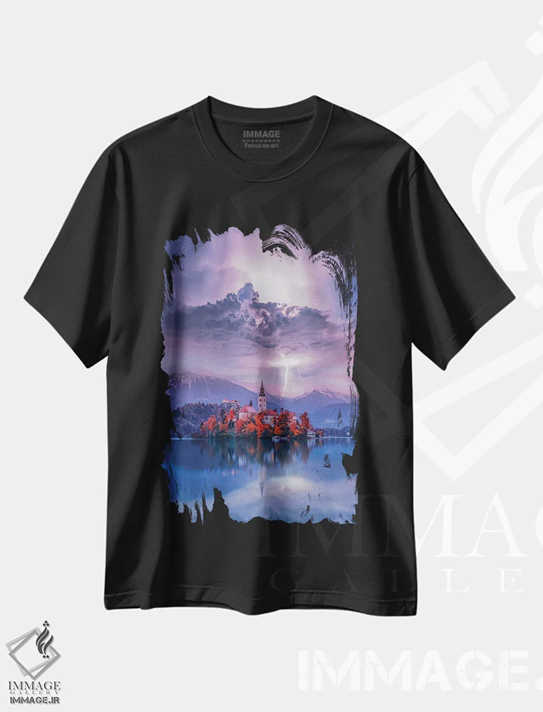 تیشرت مشکی طرح دار کمال دریاچه بلد، مدیوم اثر برنت شاونور | فروشگاه ایماژ
