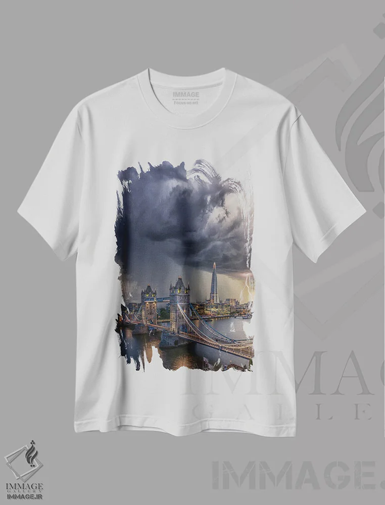 تیشرت سفید طرح دار گردباد لندن، مدیوم اثر برنت شاونور | فروشگاه ایماژ
