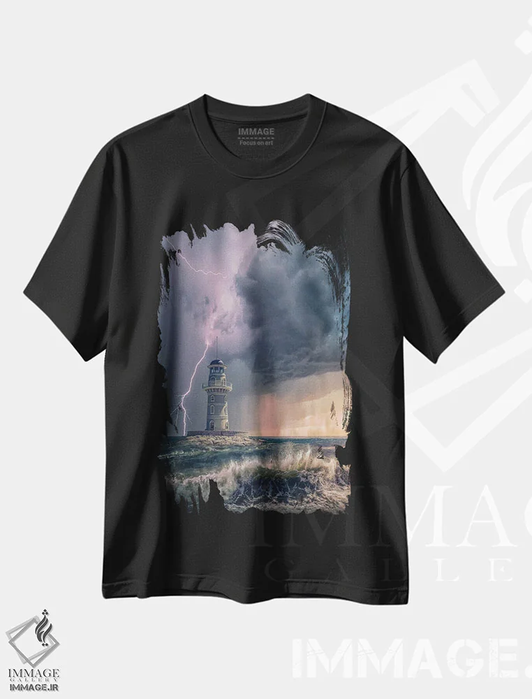 تیشرت طرح دار باران سیل آسا در فانوس دریایی اثر برنت شاونور