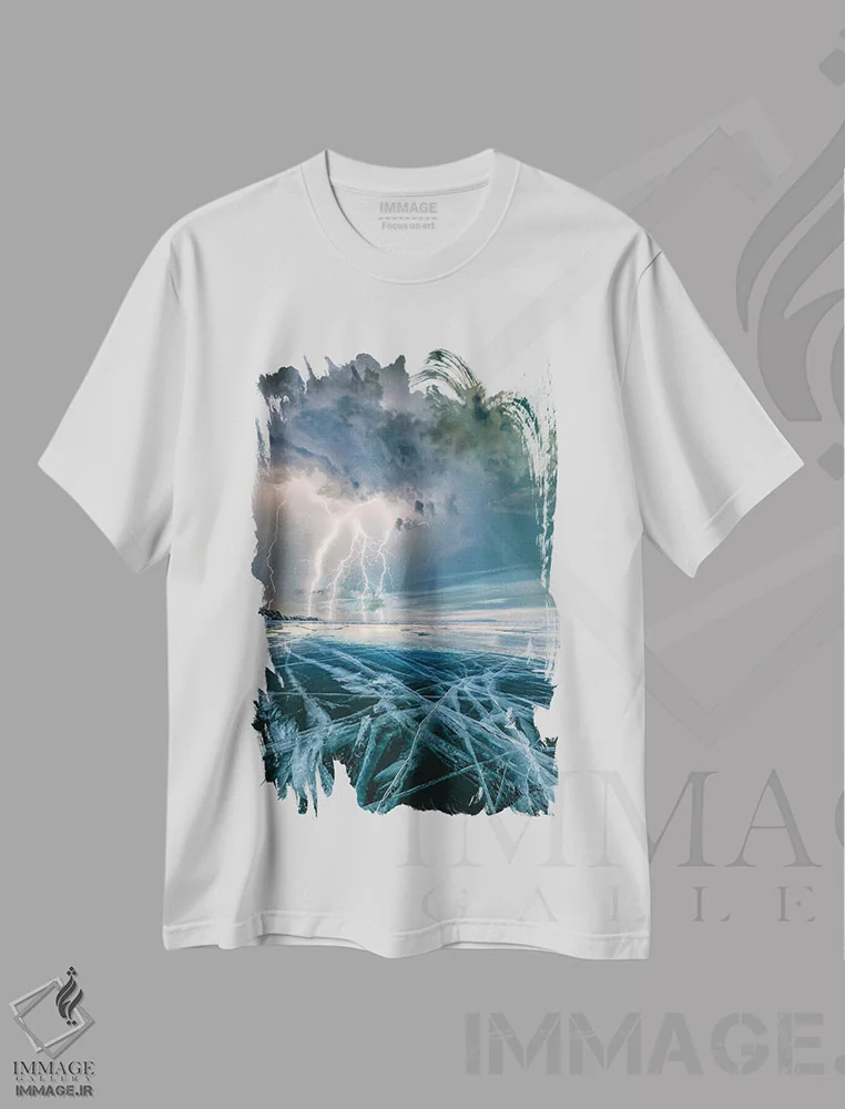 تیشرت سفید طرح دار صاعقه یخی، عکاسی هوایی اثر برنت شاونور | فروشگاه ایماژ