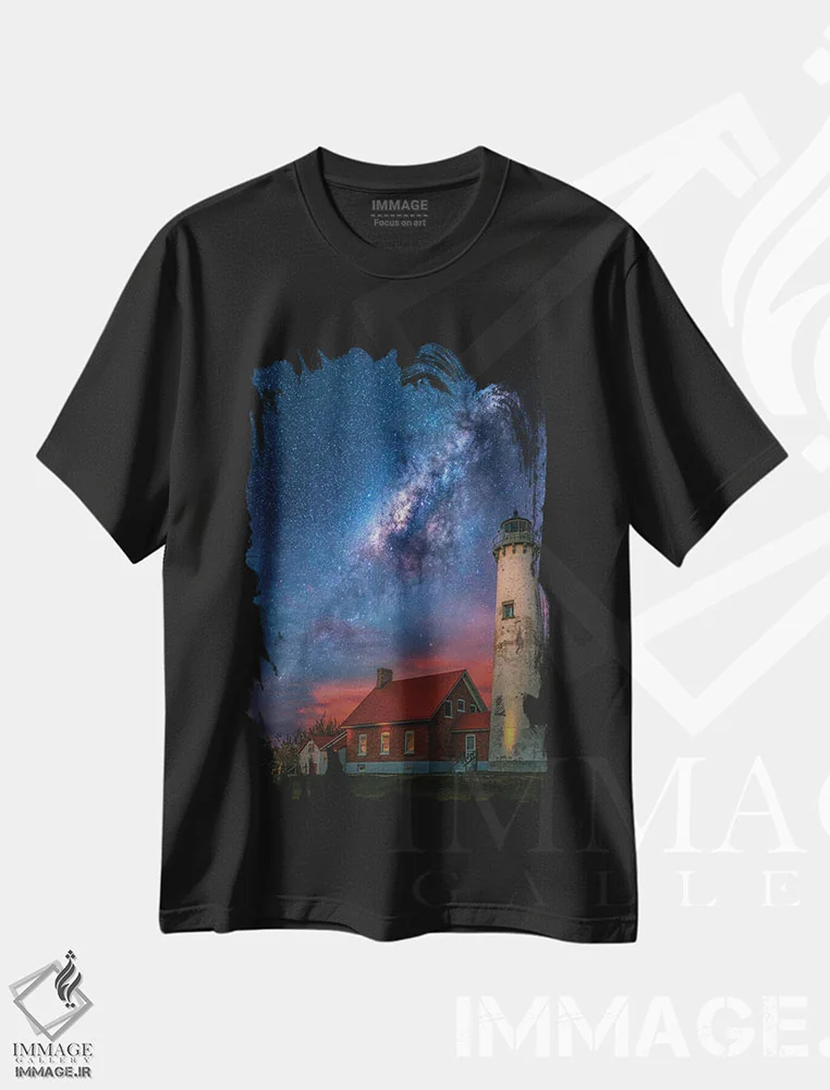 تیشرت مشکی طرح دار نور اسرارآمیز، مدیوم اثر برنت شاونور | فروشگاه ایماژ